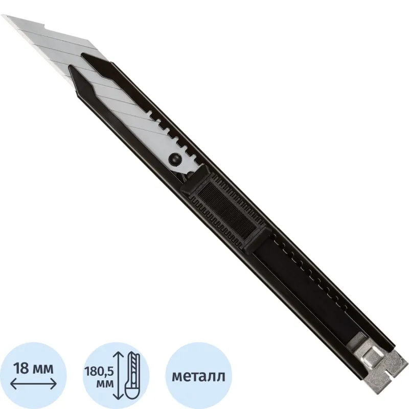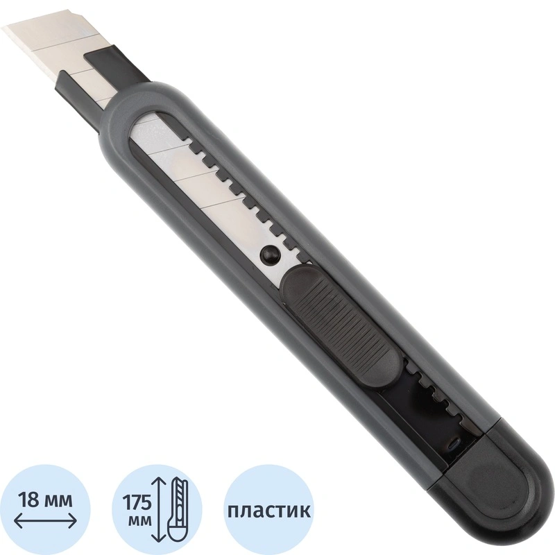 Наиболее распространены ножи канцелярские с шириной лезвия 18 мм. Они более прочные, надежные и долговечные, по сравнению с 9-миллиметровыми аналогами, способны разрезать бумагу различной толщины и плотности.