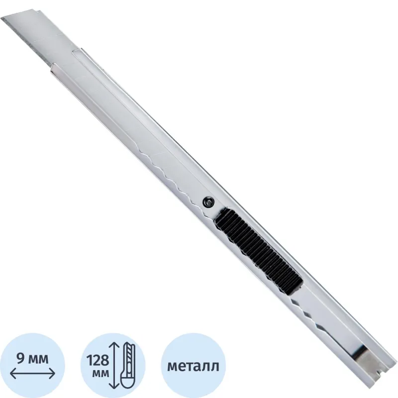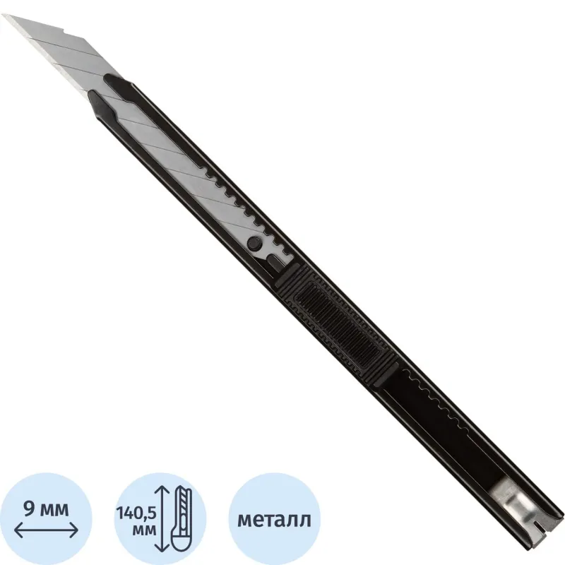 В дорогих моделях ножей канцелярских предусмотрены металлические направляющие, наличие которых обеспечивает изделию долговечность, надежность и безопасность. Благодаря эргономической ручке такие ножи легки и комфортны в работе.