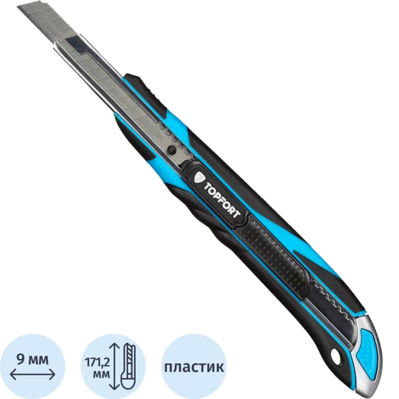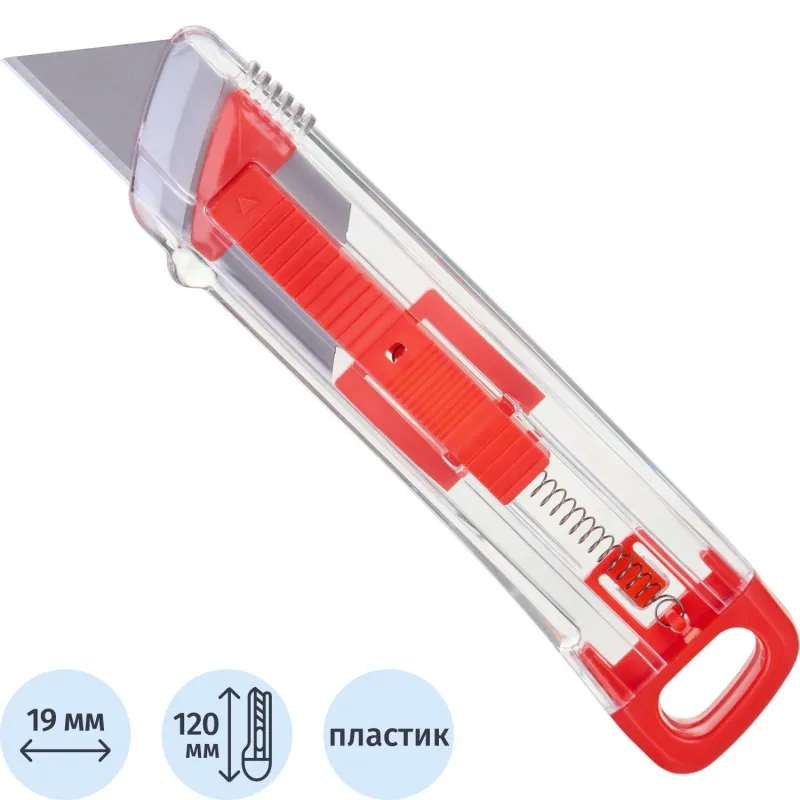 Также конструкцией предусмотрен автофиксатор, с помощью которого вы можете выдвинуть лезвие на необходимую длину и надежно зафиксировать его в выбранном положении. Именно благодаря наличию такого механизма обеспечивается максимальная безопасность того, кто с ним работает.