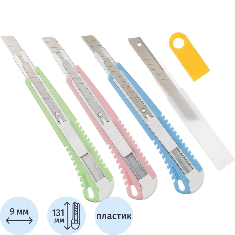 Наиболее распространены ножи канцелярские с шириной лезвия 18 мм. Они более прочные, надежные и долговечные, по сравнению с 9-миллиметровыми аналогами, способны разрезать бумагу различной толщины и плотности.