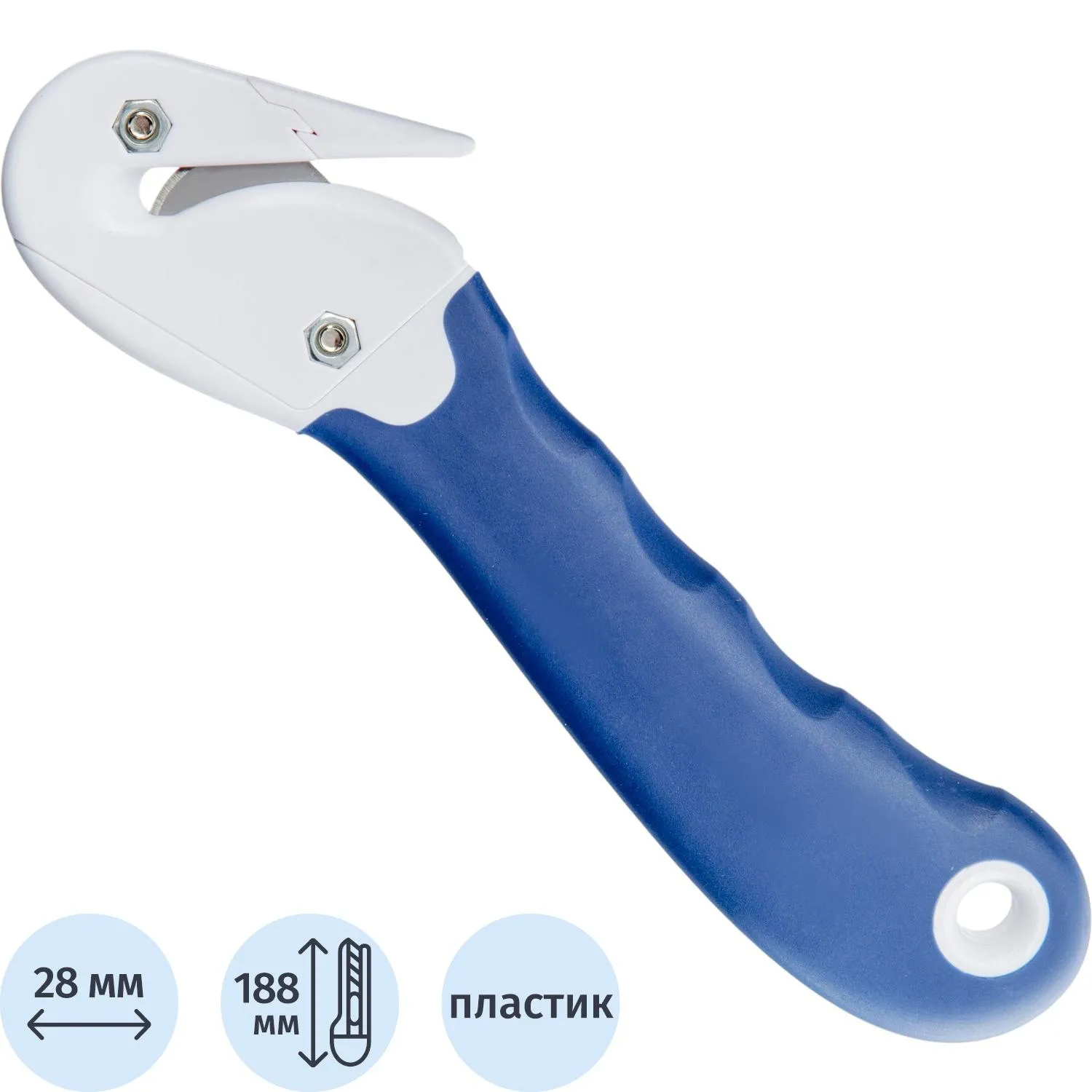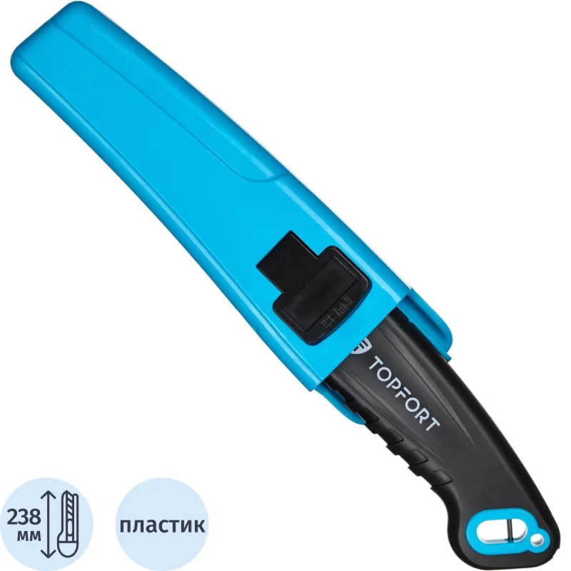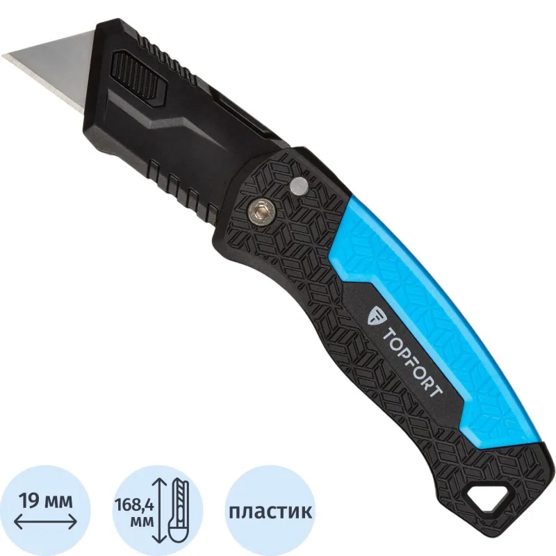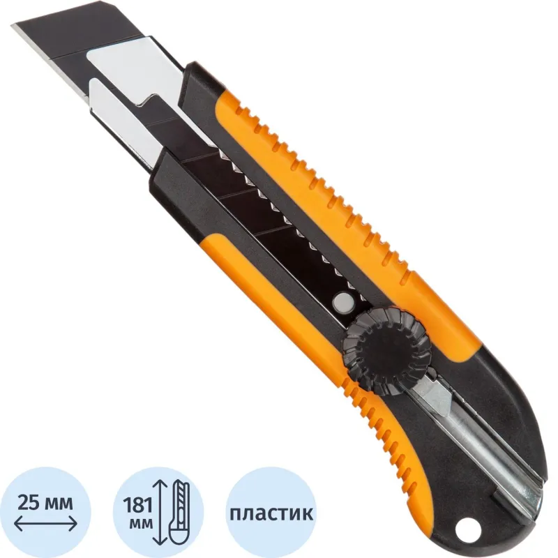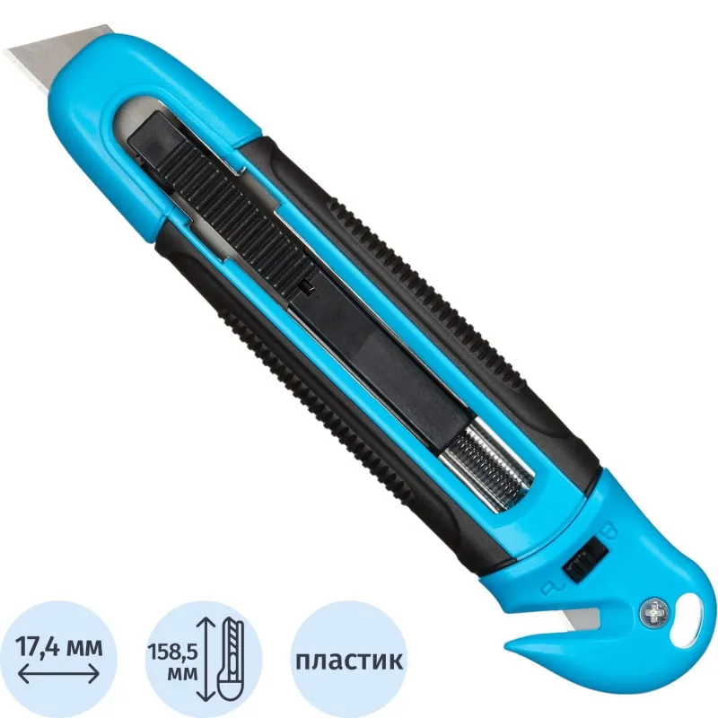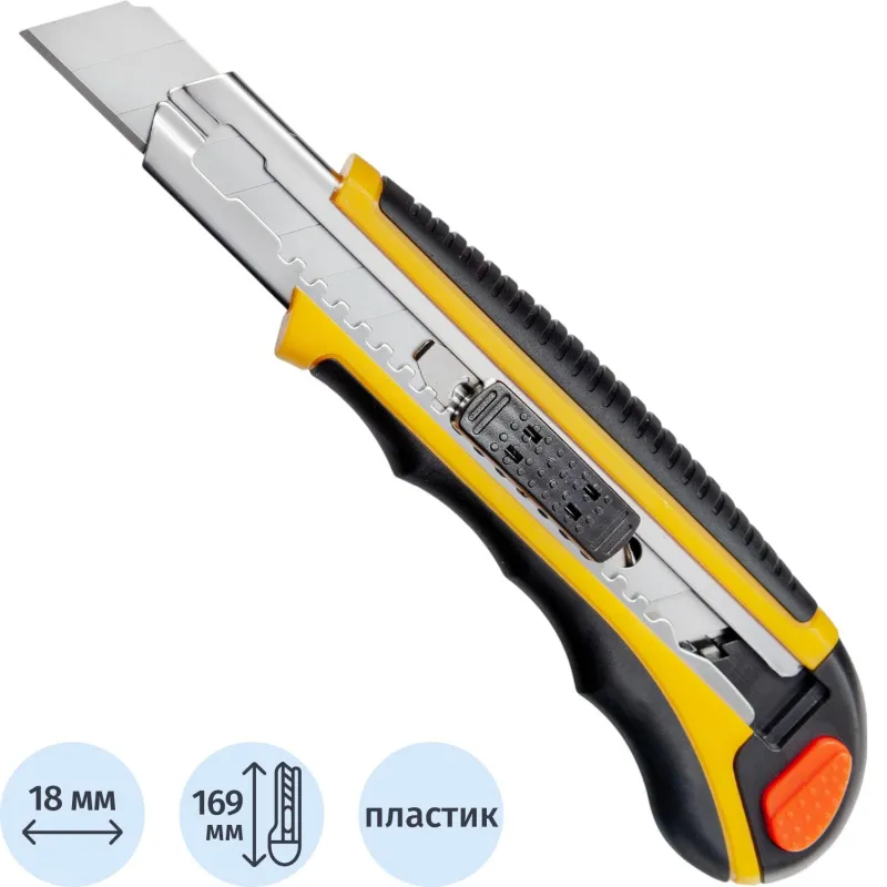 Также конструкцией предусмотрен автофиксатор, с помощью которого вы можете выдвинуть лезвие на необходимую длину и надежно зафиксировать его в выбранном положении. Именно благодаря наличию такого механизма обеспечивается максимальная безопасность того, кто с ним работает.