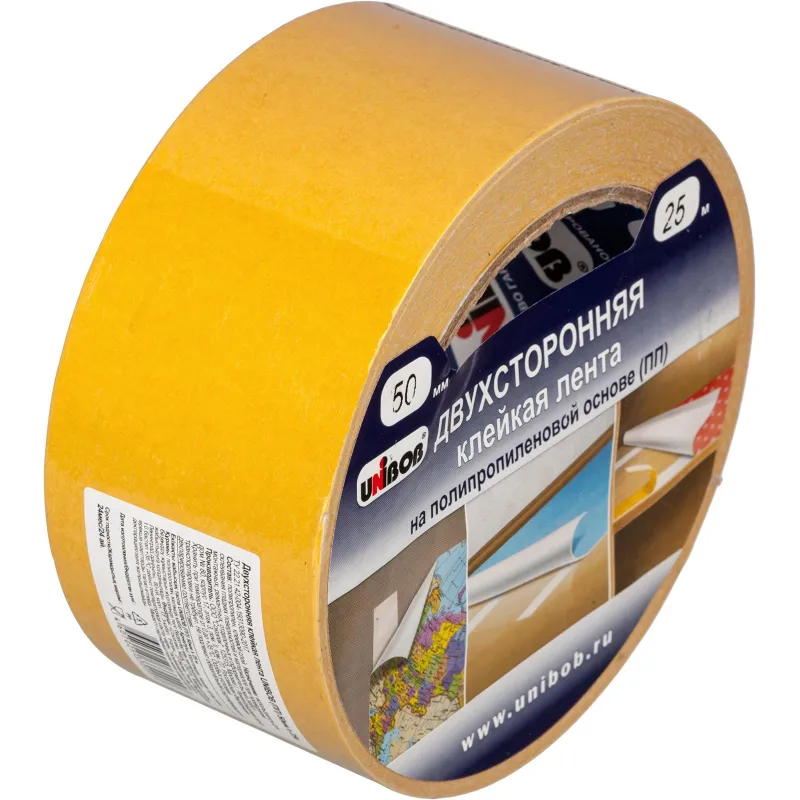 Клейкая лента двухсторонняя UNIBOB 50мм х 25м (полипропилен)