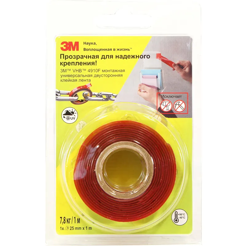 Клейкая лента прозрачная, универсальная 4910F 25 мм x 1 м