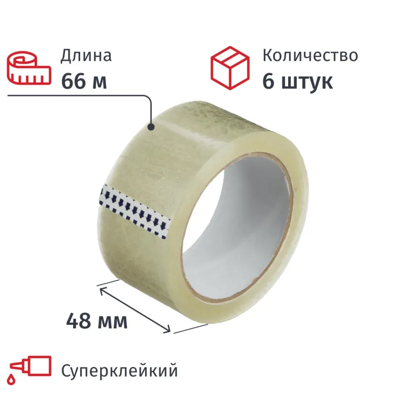 Клейкая лента упаковочная 48мм х 132м, прозрачный, 45мкм, 6 шт/уп