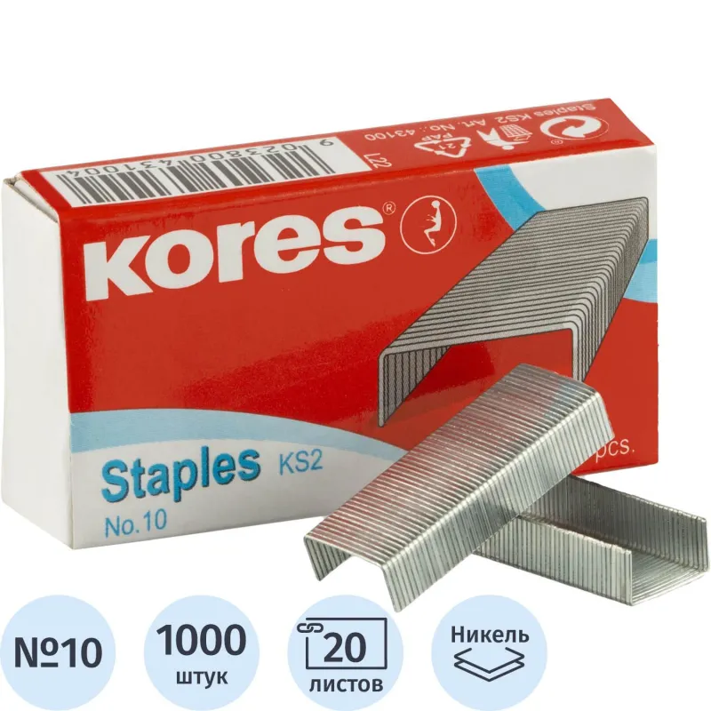 Скобы для степлера №10 KORES никелированные (2-20 листов) 1000 шт./уп