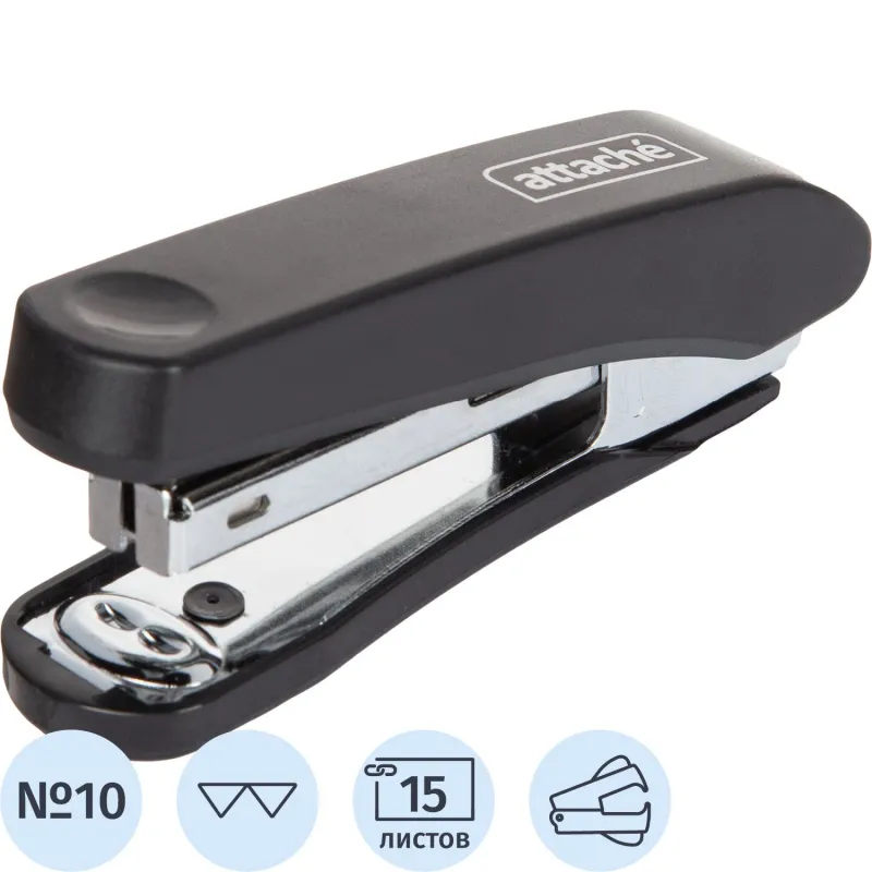 Степлер Attache Alpha (№10) до 15 листов, пластик, черный