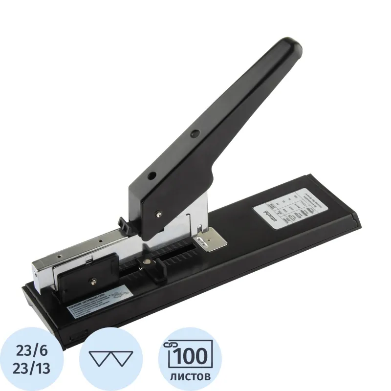 Канцелярский степлер стал настолько популярен, что сегодня можно увидеть в продаже множество его разновидностей: мини-степлер, настольный, специальный, мощный, степлер-брошюровщик. Длинный канцелярский степлер рассчитан на сшивание большого количества листов и работает по закону рычага. В большом канцелярском степлере используются крупные скобы с длинными усиками, которые позволяют захватить большое количество листов бумаги.