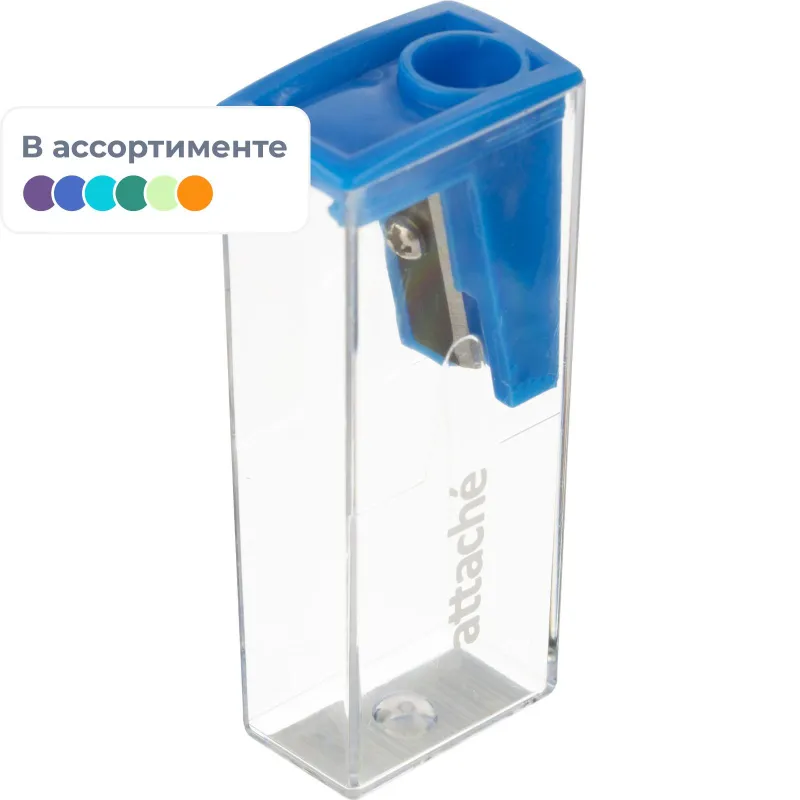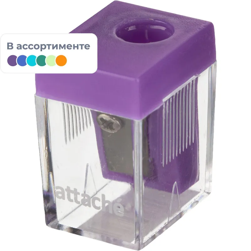 Точилка Attache Economy на 1 отв, прямоугольн.,c прозр.контейнером,ассорти