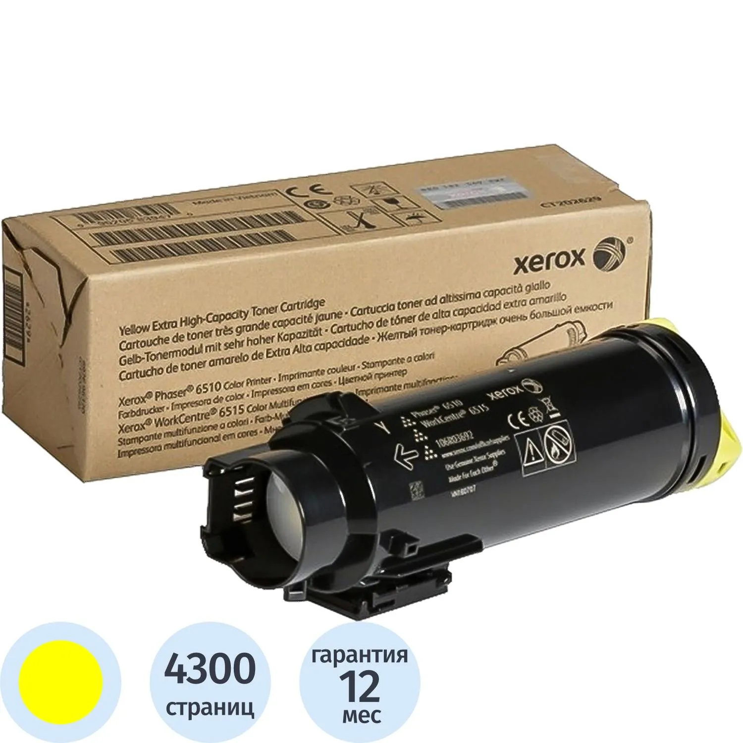 Тонер-картридж Xerox 106R03695 жел. пов.емк. для Phaser 6510/6515