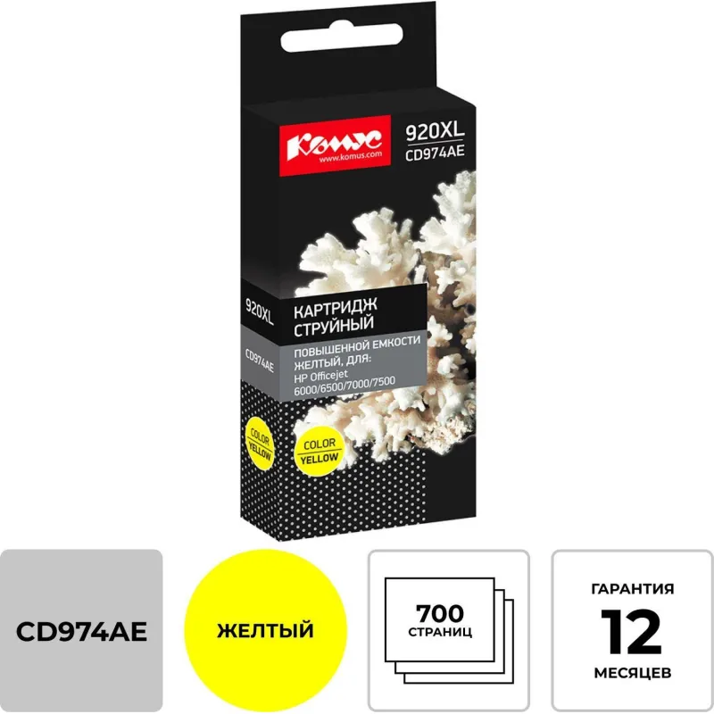Картридж струйный Комус 920XL CD974AE жел. пов.емк. для HP OJ6000