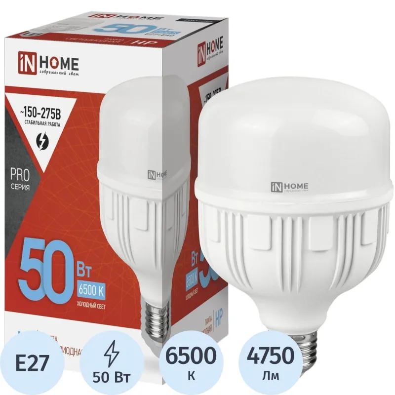 Лампа светодиодная LED-HP-PRO 80Вт 230В E27 с адаптером Е40 6500К IN HOME