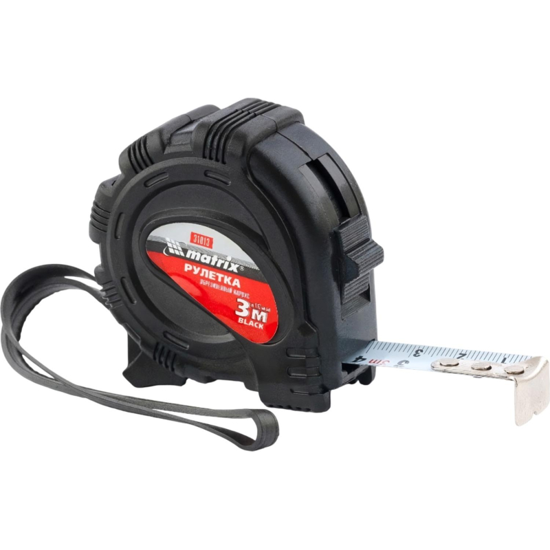 Рулетка Black, 3 м х 16 мм, обрезиненный корпус MATRIX (31013)