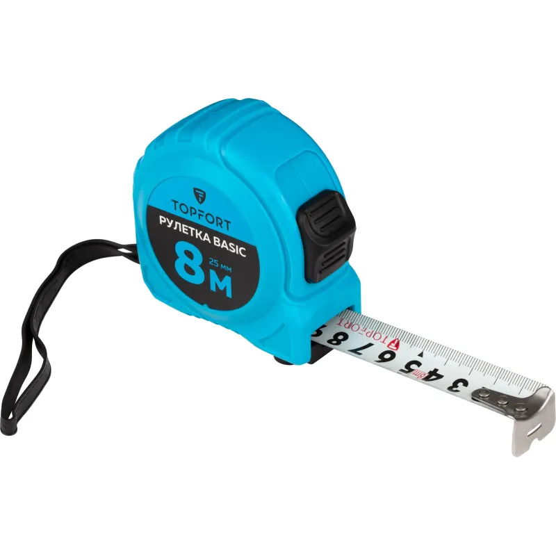 Рулетка TOPFORT BASIC 8мх25мм, пласт корпус, 2 стопора