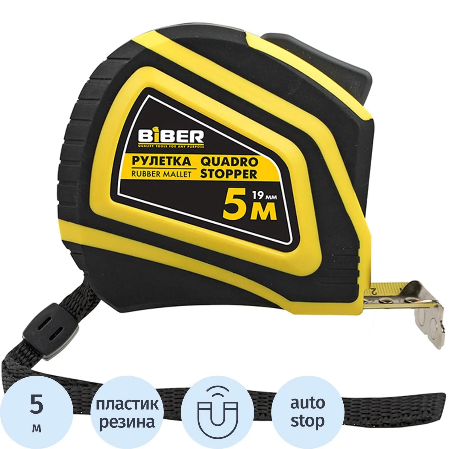 Рулетка БИБЕР 40135 Профи QUADRO STOPPER автофиксация, 5мх19мм