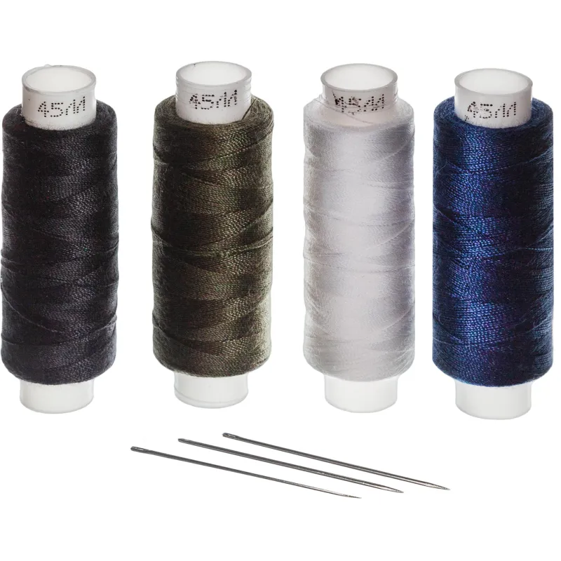 Набор ниток 45 ЛЛ 150м белая, черная, хаки, синяя + 2 иголки