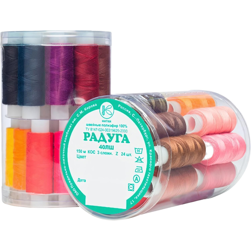 Набор ниток швейных армированных Радуга 40 ЛШ 150м х 24шт, в тубе