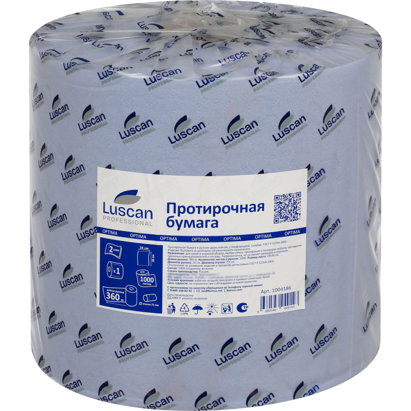 Бумага протирочная Luscan Prof 2сл 1000лx1рул/уп 360м голубая