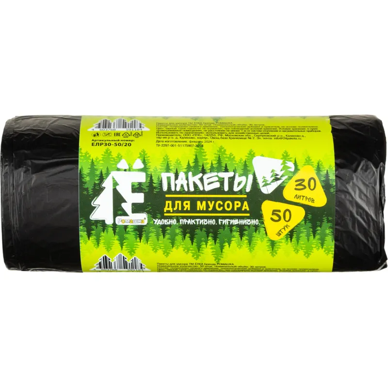 Мешки для мусора ПНД 30л 50шт/рул черные 48х57,5см Элементари ЕЛР30-50/20