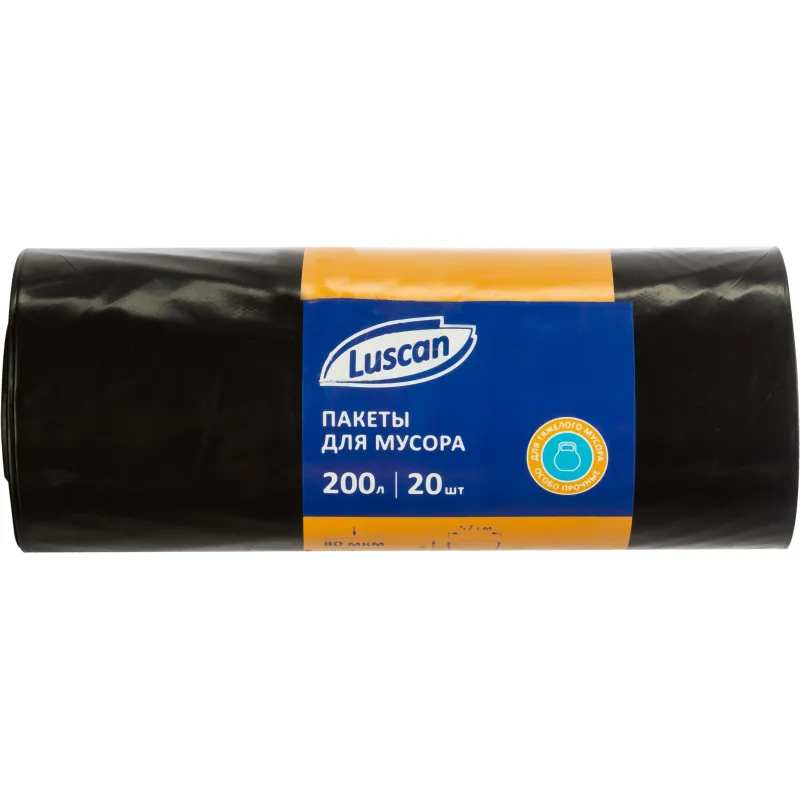 Мешки для мусора ПВД 200л 80мкм 20шт/рул черн 90х130см Luscan