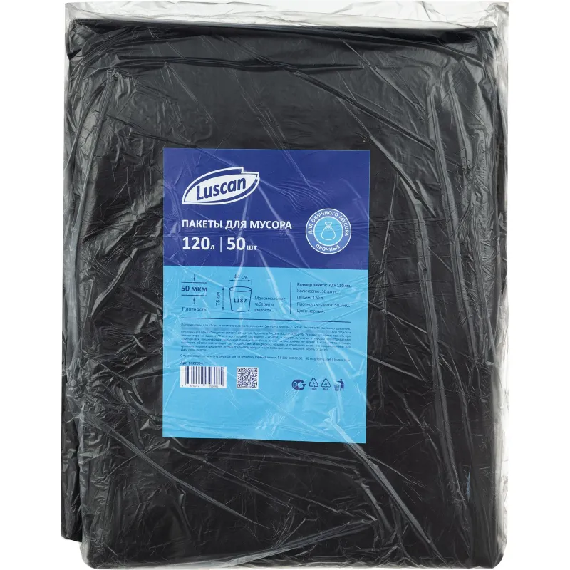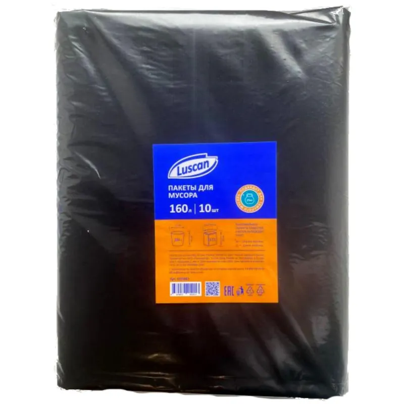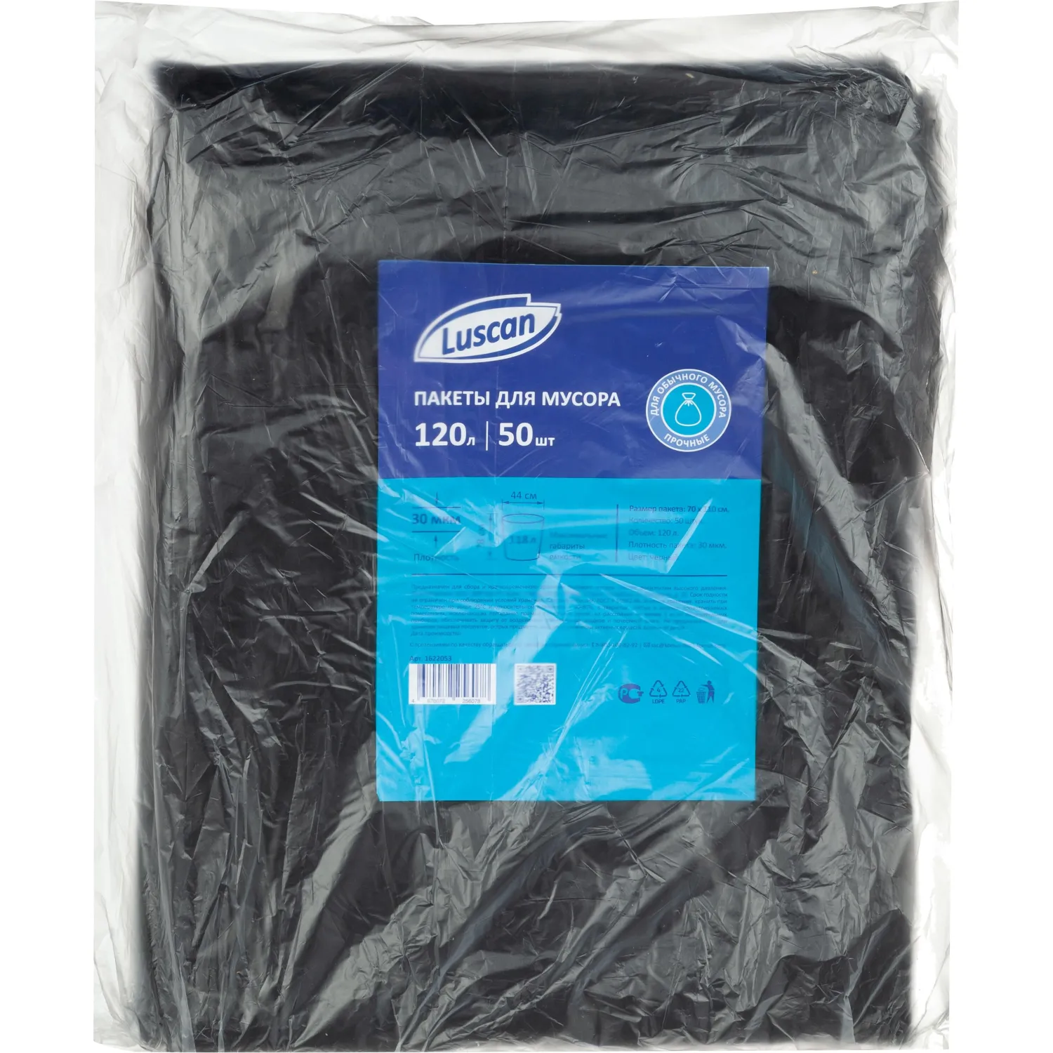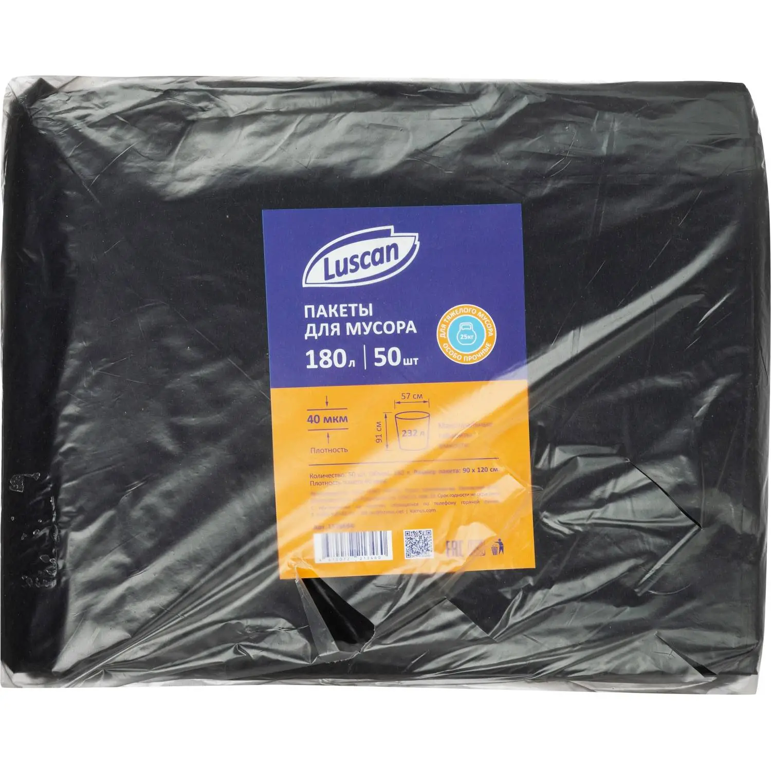 Мешки для мусора ПВД 180л 40мкм 50шт/уп черные 90x120см Luscan