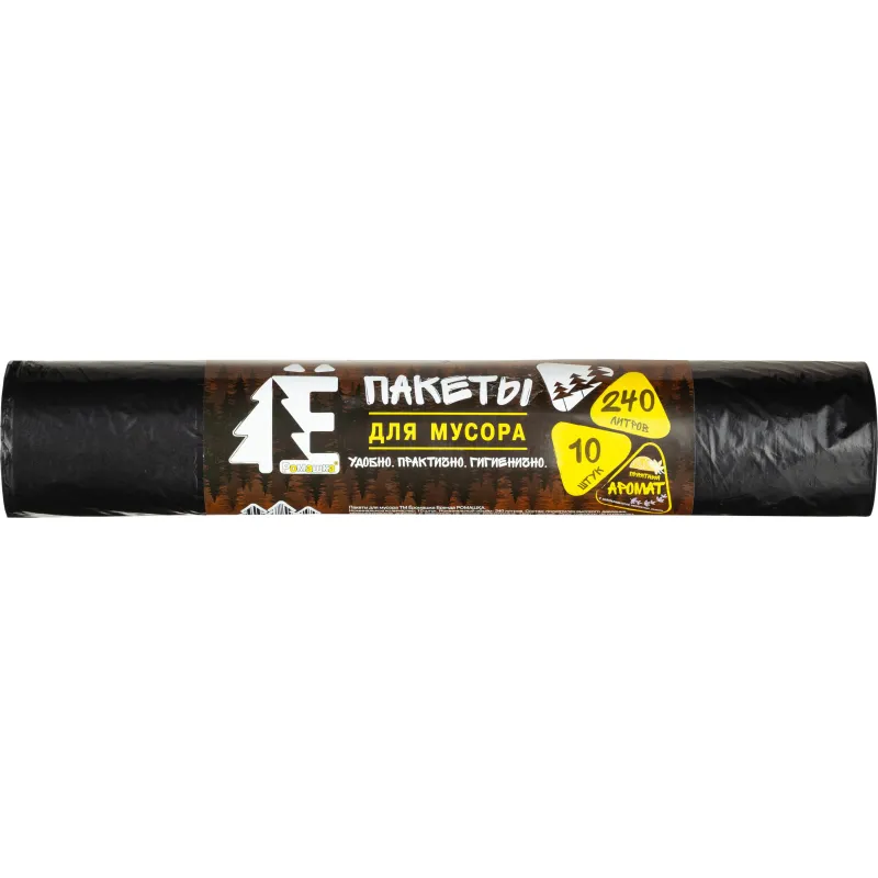 Мешки для мусора ПВД 240л 20мкм 10шт/рул черные 86х125см Эконом