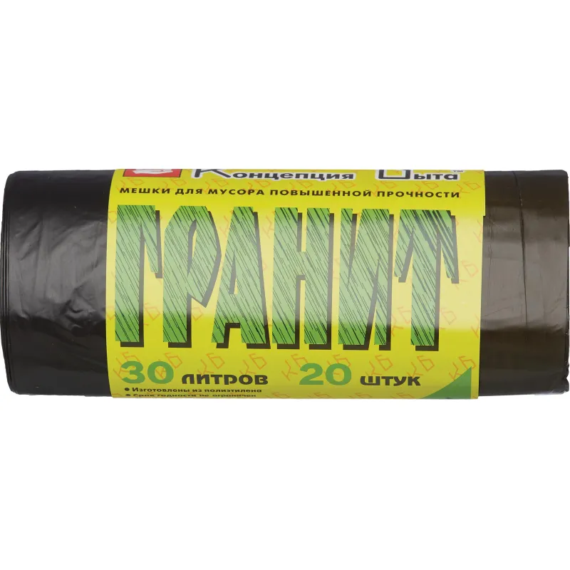 Мешки для мусора ПНД 30л 14мкм 20шт/рул черные 50x60см Гранит с завязками
