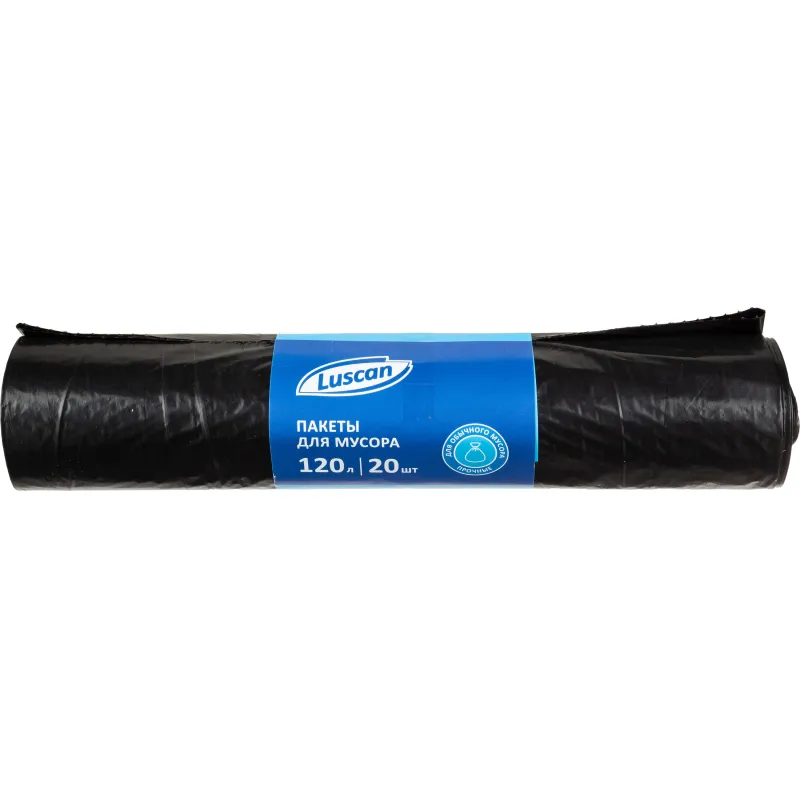 Мешки для мусора ПВД 120л 40мкм 15шт/рул прозрачные 70x110см Luscan