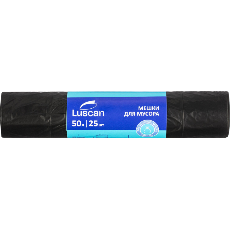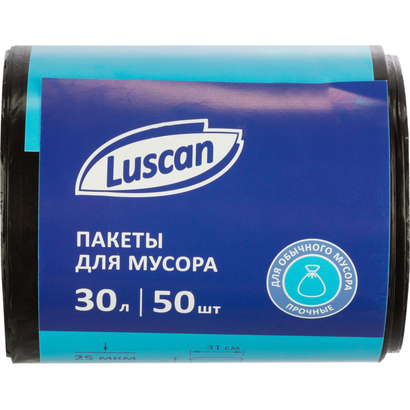 Мешки для мусора ПВД 30л 25мкм 50шт/рул черные 50x70см Luscan