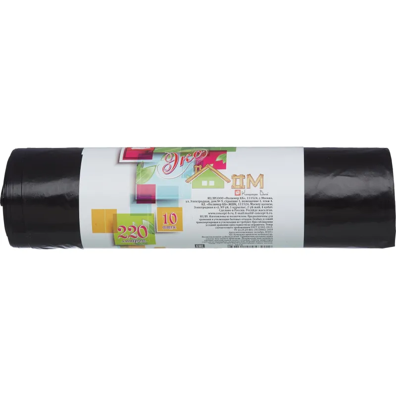 Мешки для мусора ПВД Элементари 240л, 50 мкм 10шт/рул.,черные 90х130см