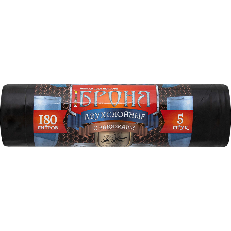 Мешки для мусора ПВД 180л 55мкм 5шт/рул черн 90х110см, Броня, с завязк