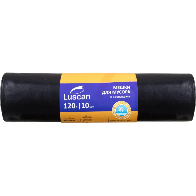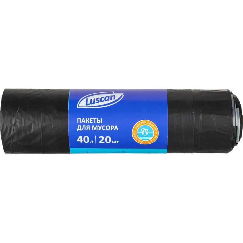 Мешки для мусора ПВД 60л 35мкм 20шт/рул черн 60x70см с ручками Luscan