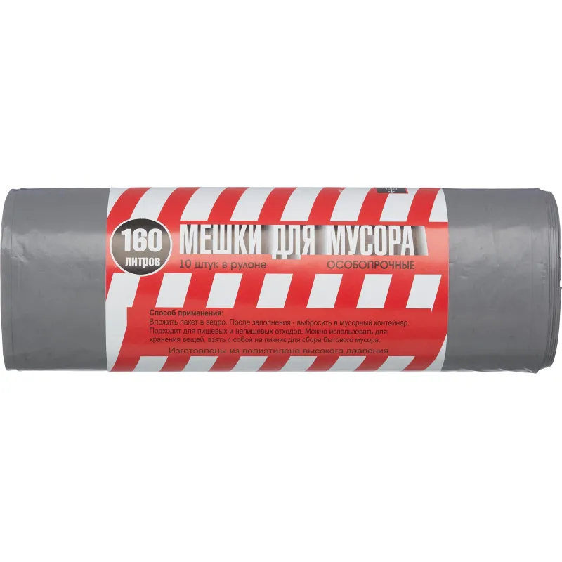 Мешки для мусора ПВД+добавка 160л 50мкм 10шт/рул серые 90х130см