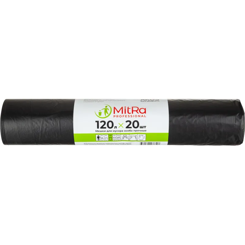 Мешки для мусора ПНД 120л 25мкм 20шт/рул зеленые 70х110 см Luscan