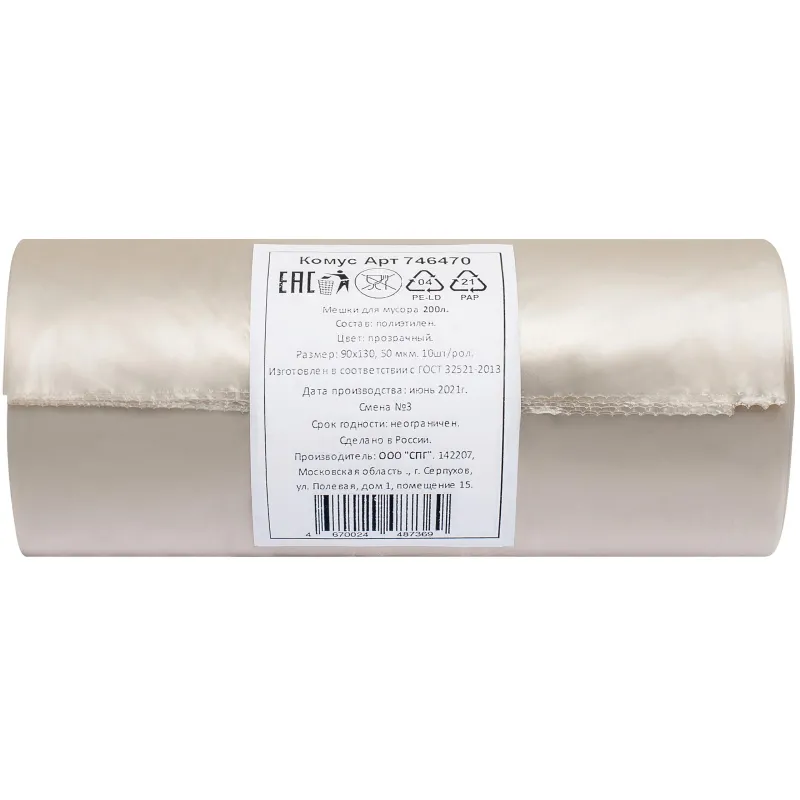 Мешки для мусора ПВД 200л 90х130см 50мкм прозрачные 10шт/рул ЭЛ