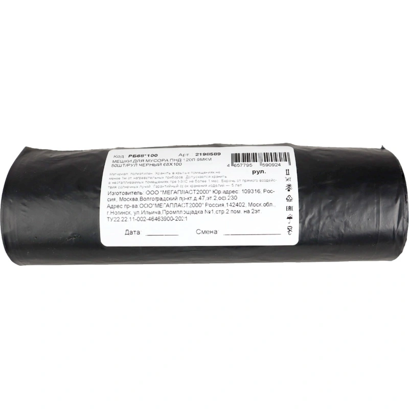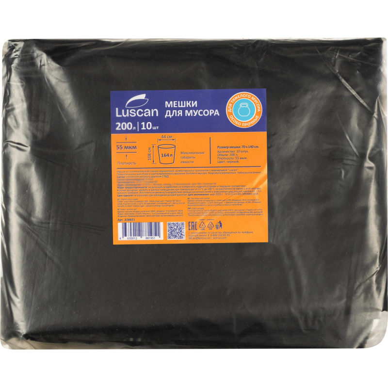 Мешки для мусора ПВД 120л 80мкм 10шт/рул черные 70x110см Luscan