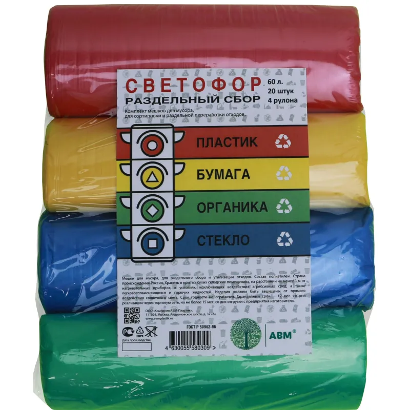 Мешки для мусора ПНД 60л 10 мкм 20шт/рул Светофор 58х68см