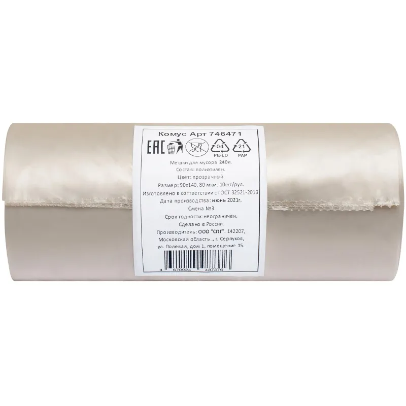 Мешки для мусора ПВД JUMBO 240л 100мкм 10 шт/рул черные 90х135см