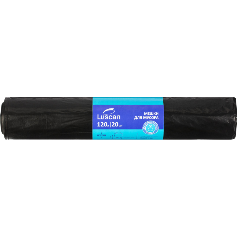 Мешки для мусора ПВД 120л 35мкм 20шт/рул черные 68х110см Luscan
