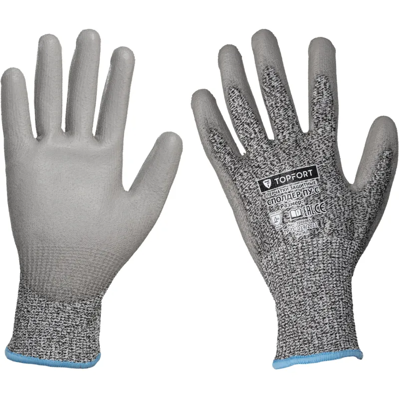 Перчатки защитные от порезов TOPFORT Сполдер ПУ C с ПУ покрытием р.9