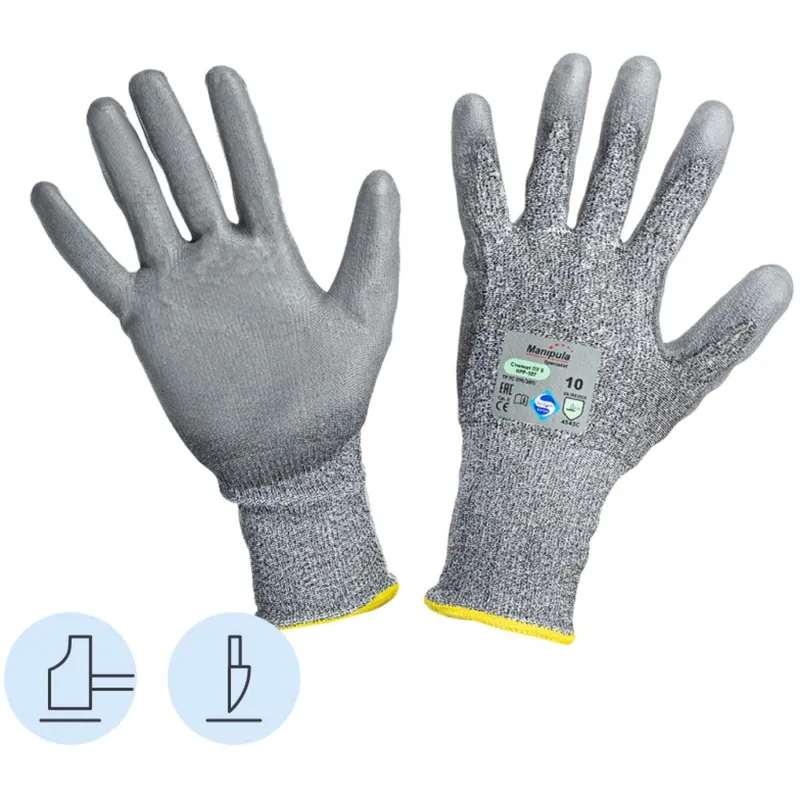 Перчатки защитные от порезов Manipula Стилкат ПУ 5 (HPP-107/MG-466)р10