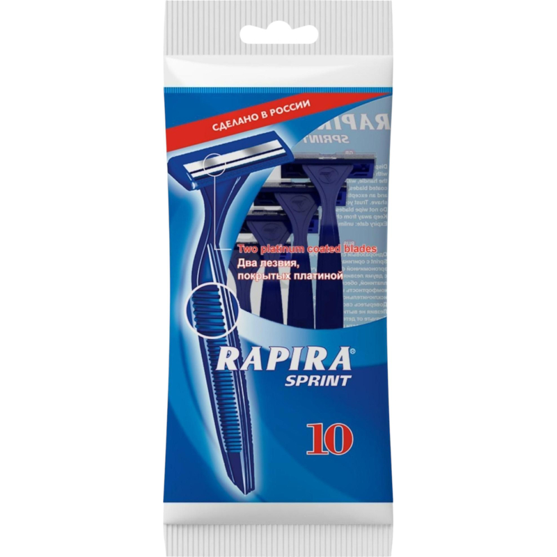 Бритва одноразовая Rapira SPRINT 2-лезв.,фикс.головка, 10шт/уп РК-102СП