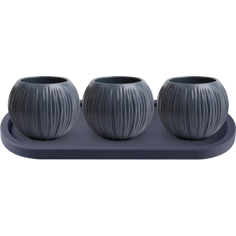 Набор кашпо Сфера Мини (0,3л) на подставке Амалия Антрацит 3шт,КШ-0705