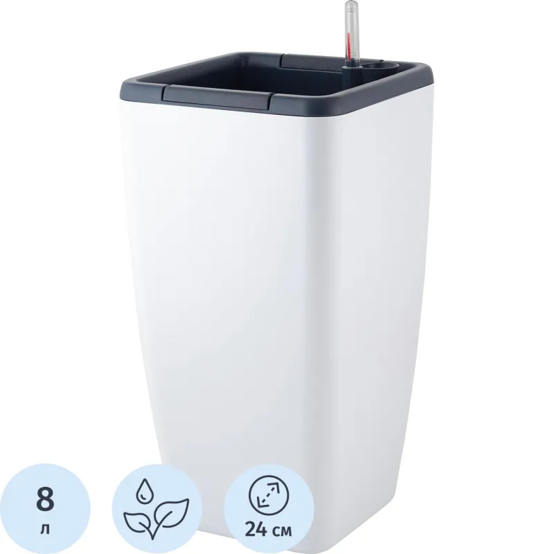 Горшок с автополивом Munchen 20л с вставкой 8л,квадратный,бел , IG622511048