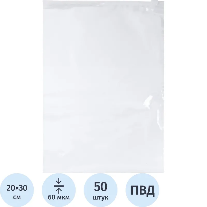 Пакет с замком слайдер EVA прозрачный 60 мкм 20х30, 50 шт/уп