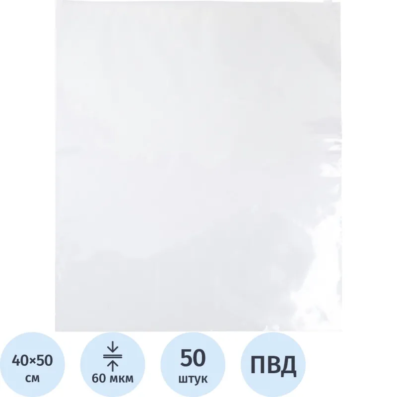 Пакет с замком слайдер EVA прозрачный 60 мкм 50х60, 50 шт/уп
