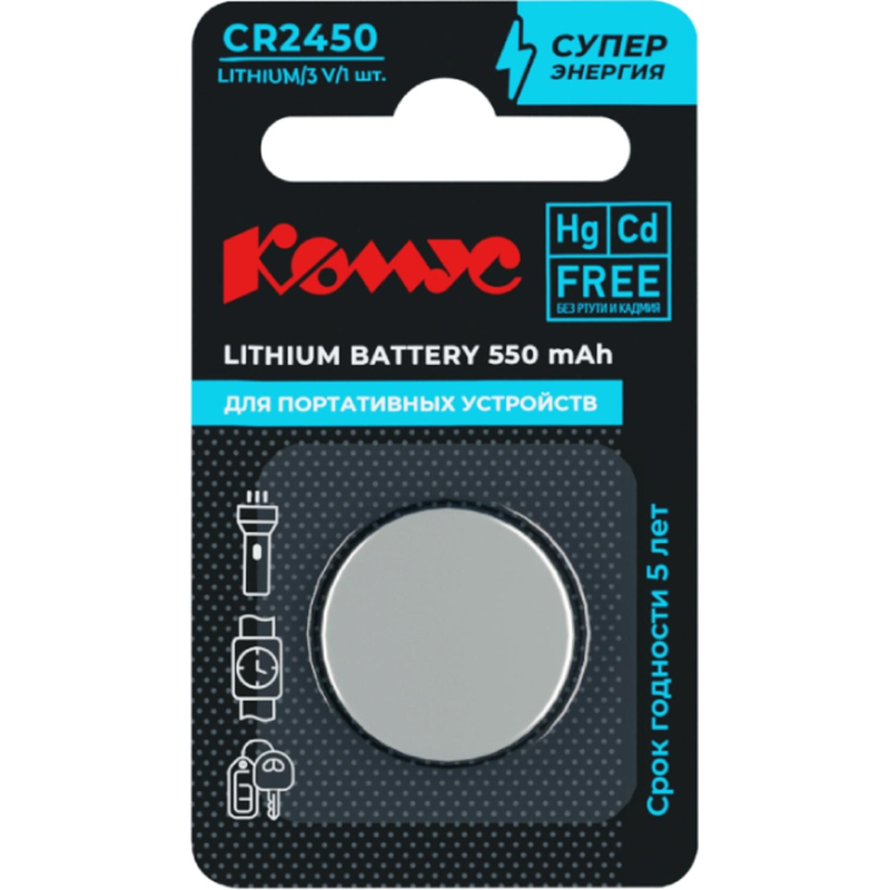 Батарейка Комус, литиевая, CR2450, бл/1шт