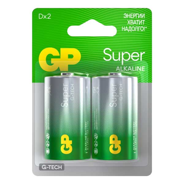 Батарейка GP Super D/LR20/13A алкалин, 13AA21-2CRSBC2, 2шт/уп