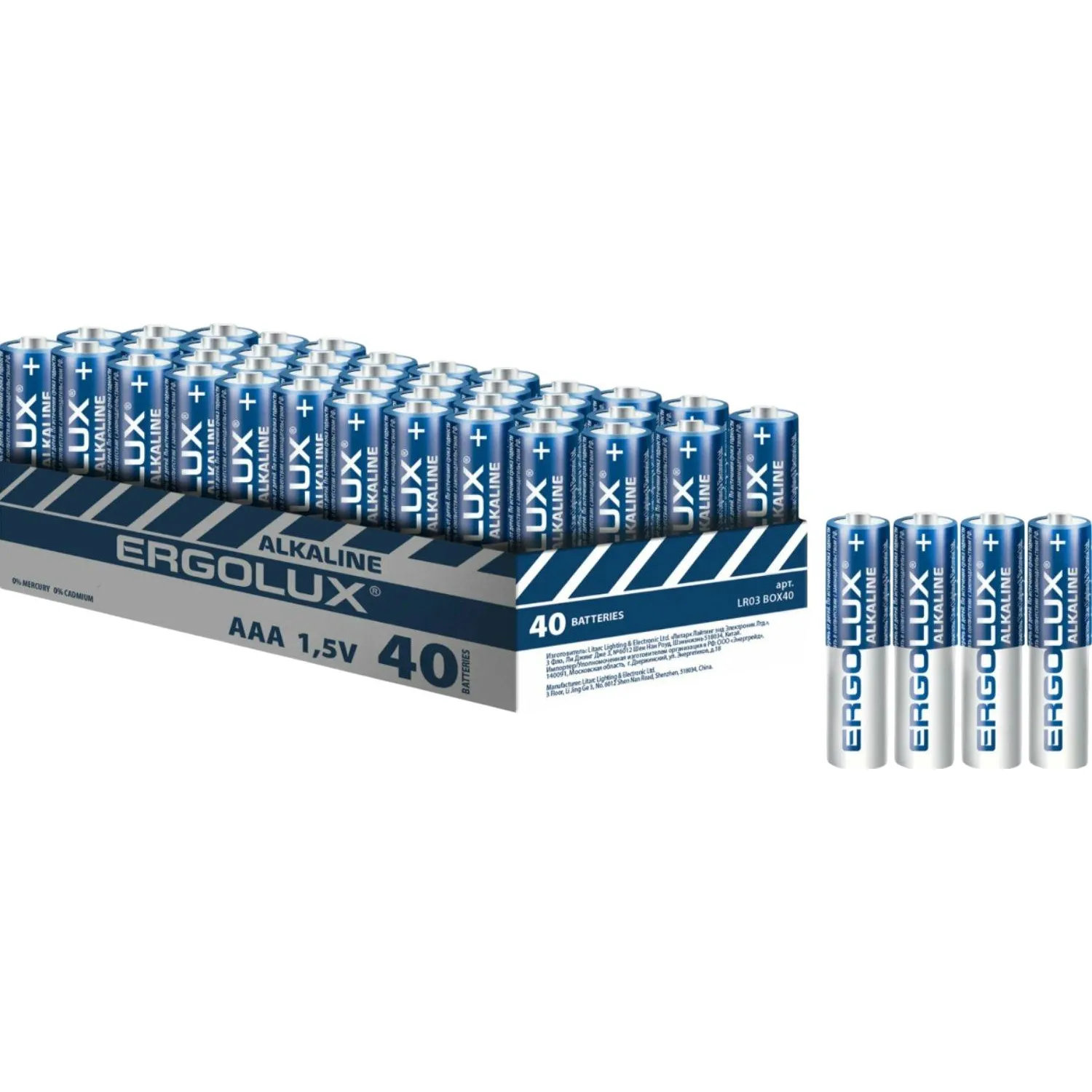Батарейка Ergolux Alkaline BOX40 LR03 (ПРОМО, LR03 BOX40, 1.5В) 40шт/уп