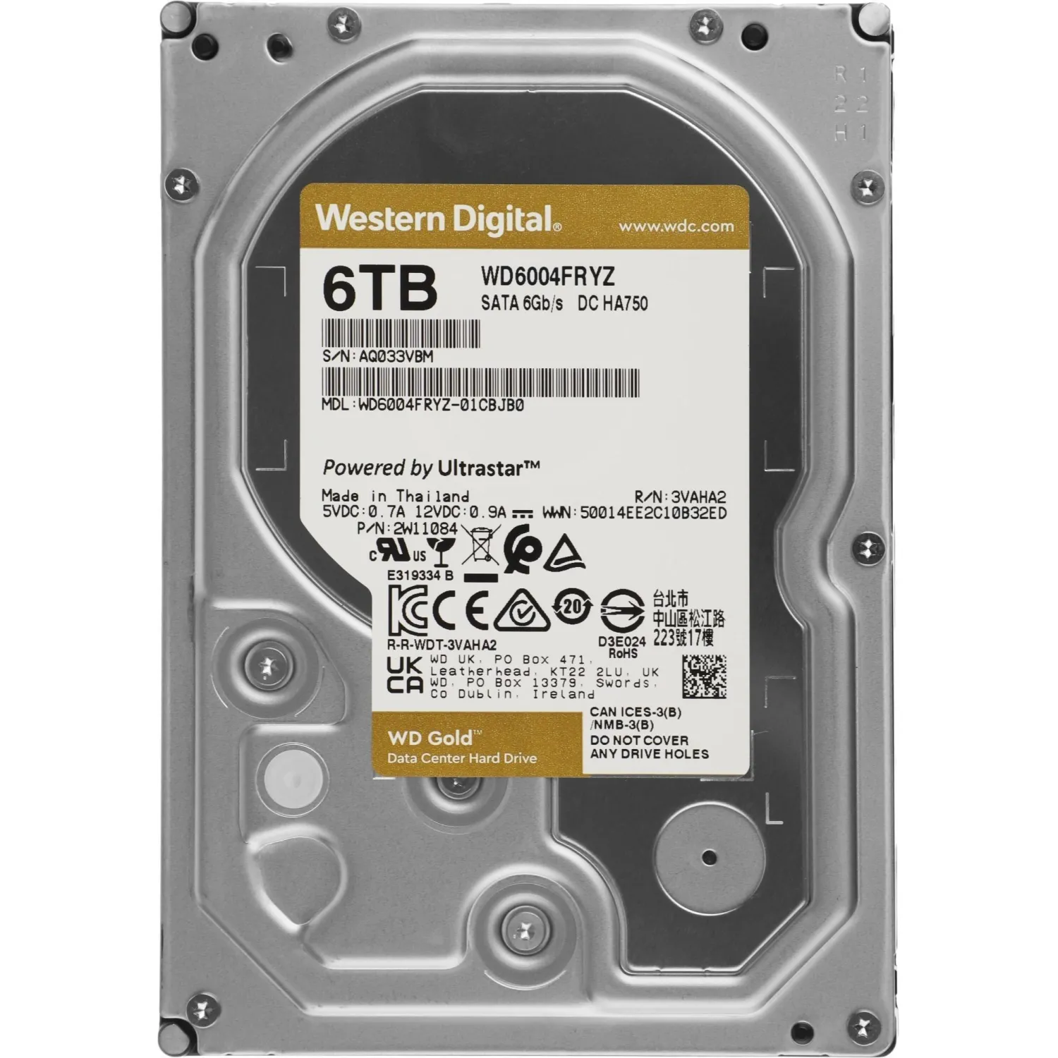 Жесткий диск WD Gold 3.5 6TB SATA,256MB,7200rpm(WD6004FRYZ)