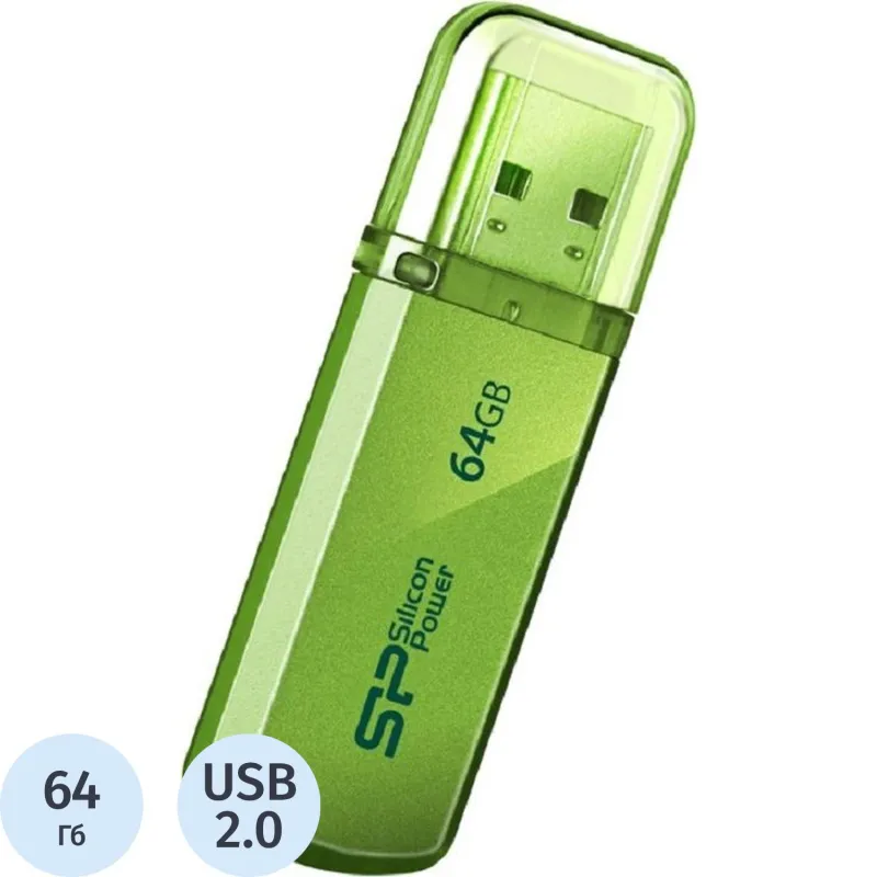 Флеш-память Silicon Power Helios 101 64GB USB 2.0, зеленый, алюминий